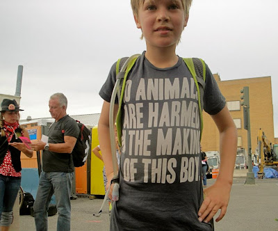 Monica practicing her Cop Whispering skills after an over zealous man walked onto the construction site despite fellow activists & security guards asking him to stop.